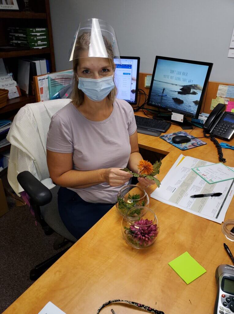 “The glass bowls provided the perfect starting point for our centerpieces,” explained Kelley Johnson, a receptionist at Wellhaven. “As the season changes, we can update the decorations to match.”