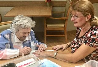 Activity Assistant Mary had her nails painted by resident Esther on Tuesday, September 5 at TLHA Heritage Homes in Watertown, Wisconsin. Esther sold Avon products throughout her life and still to this day loves...