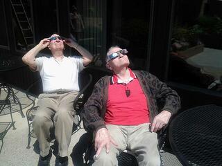 Residents at St. Michael’s Assisted Living, in Fountain City, Wisc., were able to observe the solar eclipse, through approved sunglasses, on Monday, Aug. 21.