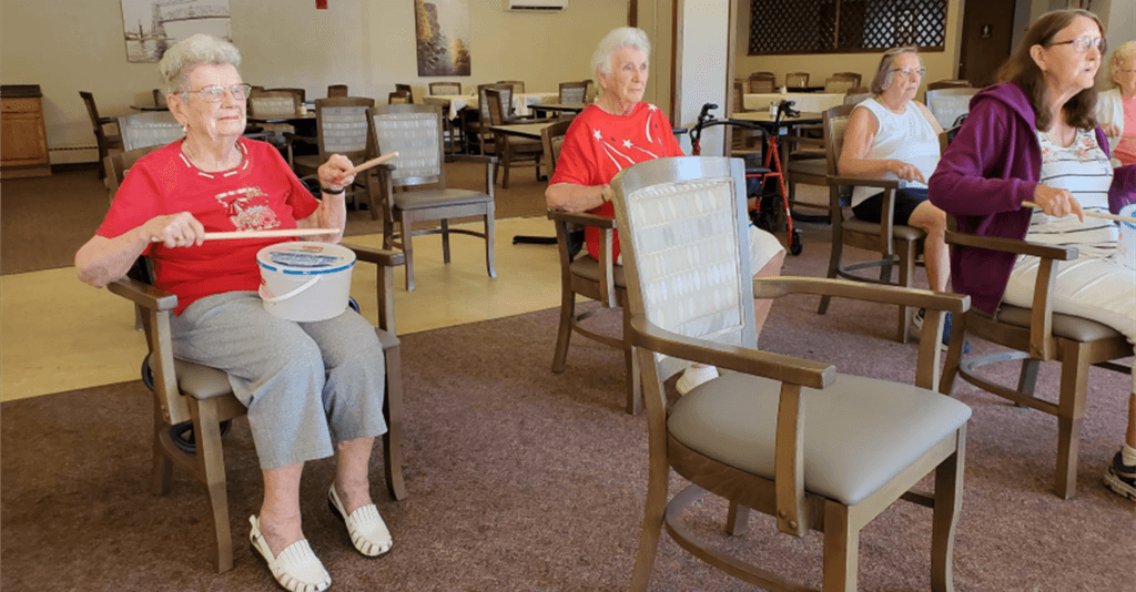 Wellhaven tenants love trying new activities! We recently had the opportunity to learn how to drum! Volunteer Shelly Loomis led the group of tenants. We used empty ice cream gallon buckets as drums, so easy!