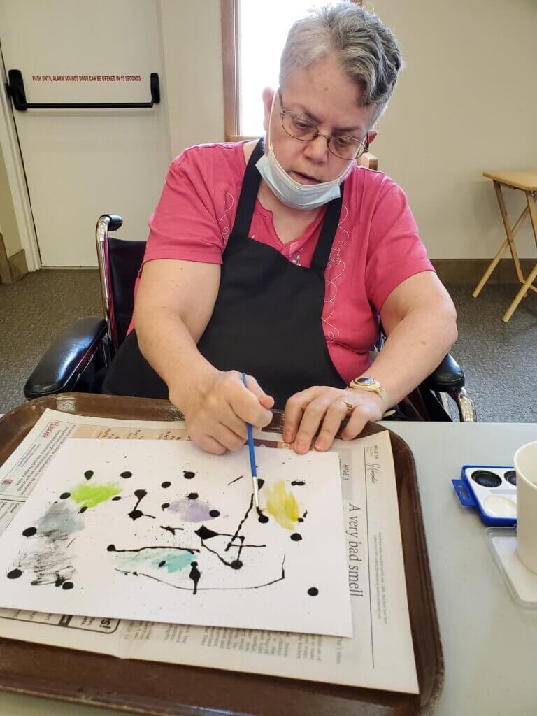“We love seeing all the different artwork done by our residents. Despite starting with the same prompts and using the same colors, every painting always comes out different. It’s so beautiful to see residents be inspired and take control of their artwork.”