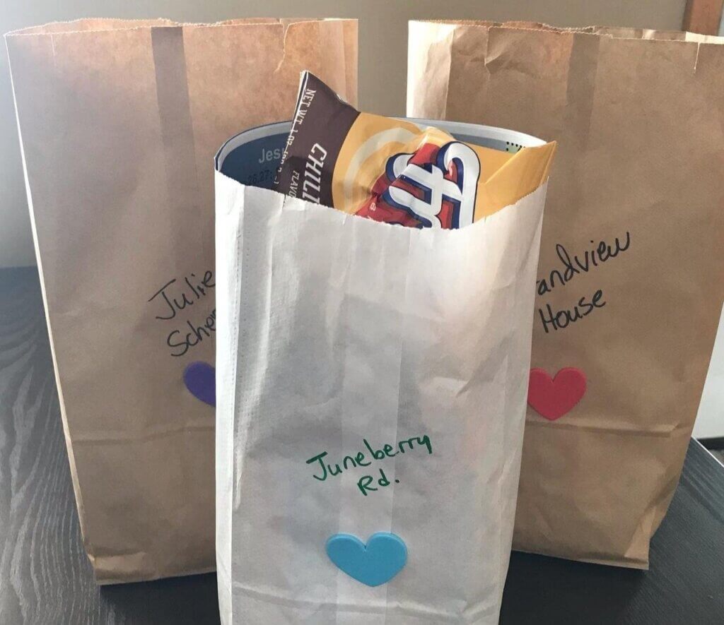 “The snack will be based on the person we’re serving. Sometimes we have people who can only eat soft foods like pudding or applesauce, or we know a favorite snack of a few individuals. We try to make the craft something easy for a caretaker to do with a student. The small gift may be stickers or bubbles,” Jill explained.