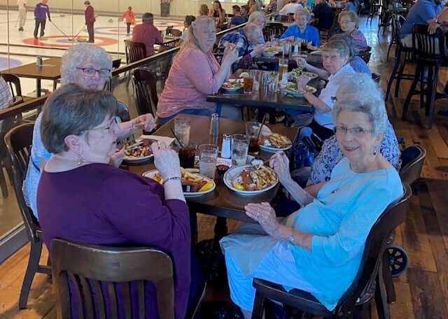 - Residents at Kingsway recently enjoyed lunch at the Crooked Pint in Chaska. During their meal, the residents watched curling practice.