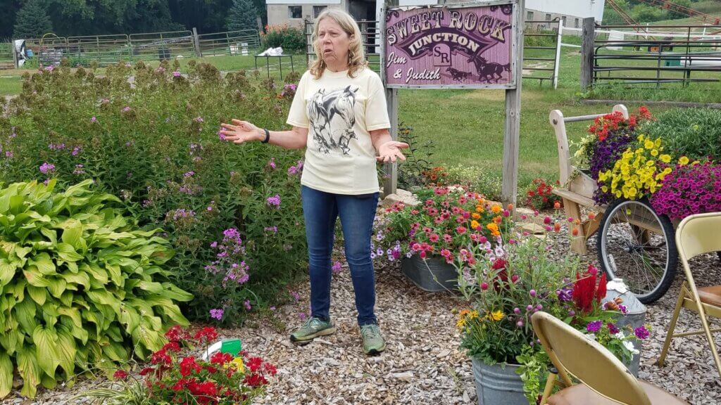 Wellhaven’s tenants visited Rock Junction Farm to learn more about gardening and farming from the farm owner, Judith Hansen. Chairs were set up in the flower garden so that all of tenants could listen to the presentation.