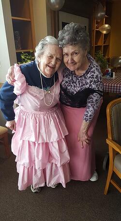Barbara no longer has a sewing machine, but she does a little bit of hand sewing and other arts and crafts at Heritage Homes. Barbara also likes to paint and play solitaire. Her good friend Esther, who also lives in memory care, gives her a sounding board for her mischievous banter.