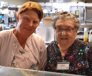 Leona Sellnow is proud to share that four generations of her family have worked at The Lutheran Home: Belle Plaine, including her. Leona’s mother worked as a cook for 19 years, her daughter Linda was an assistant cook, daughters Donna and Sandy were resident assistants and her granddaughters Cora and Emily worked in the kitchen. Sandy still works at The Lutheran Home and is in the kitchen with Leona.
